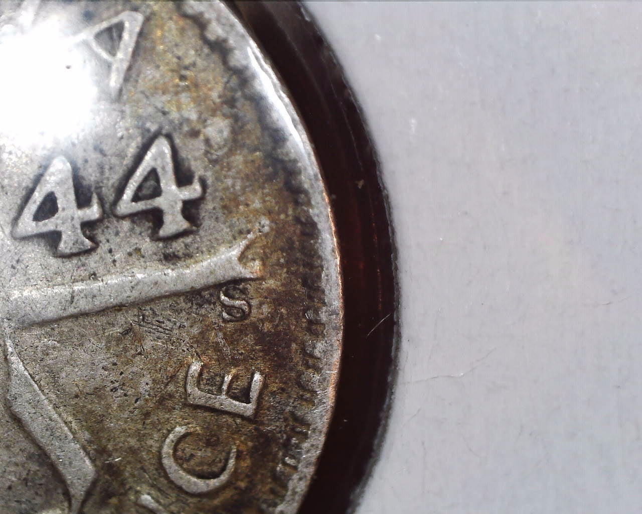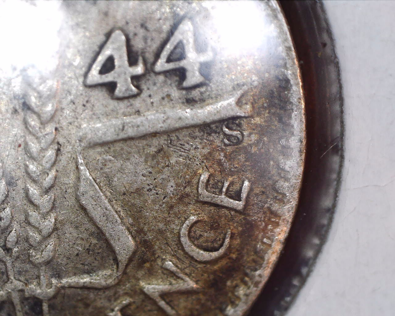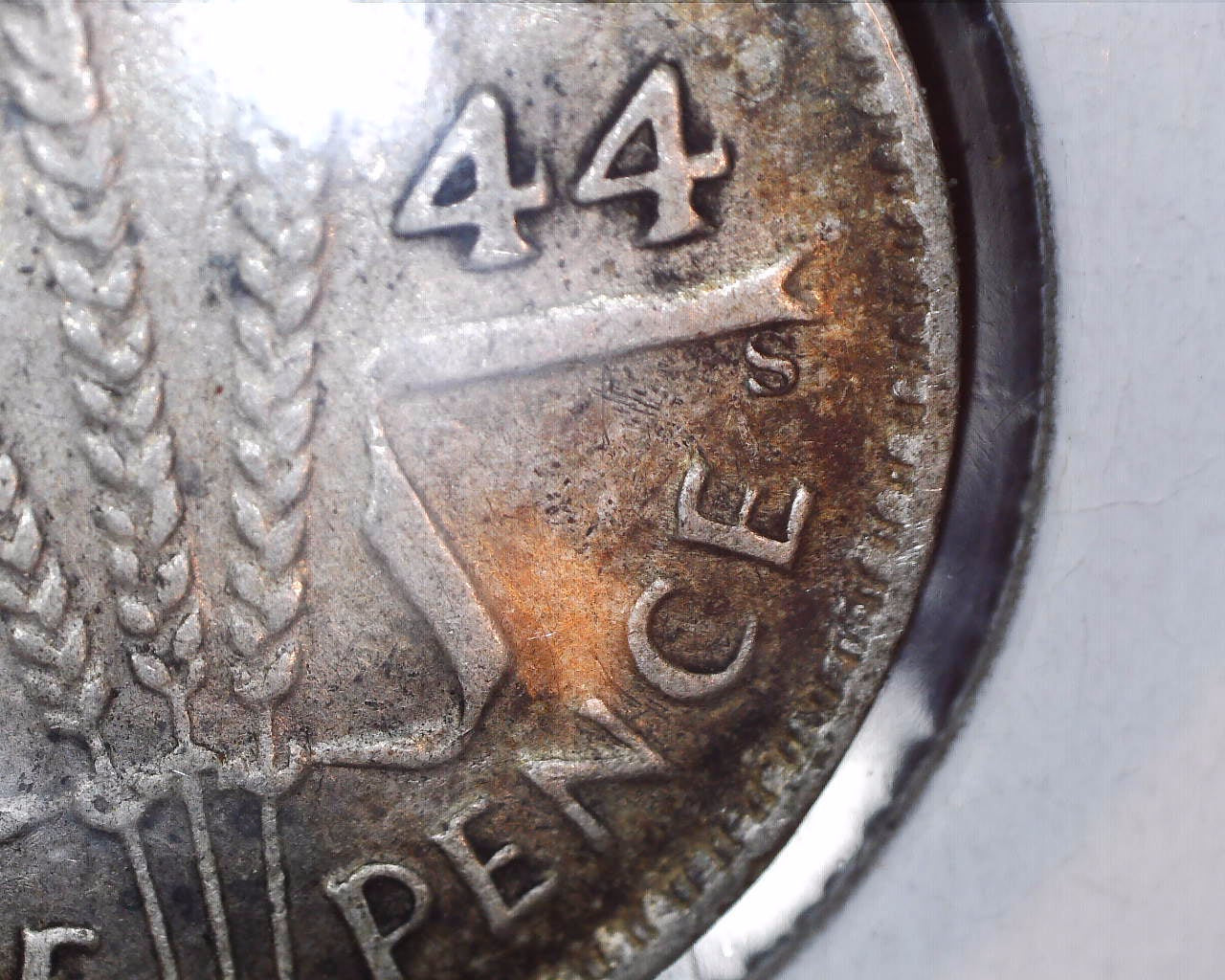 1944 - S Australian Three Pence - 92.5% Silver - High Mintmark Error
