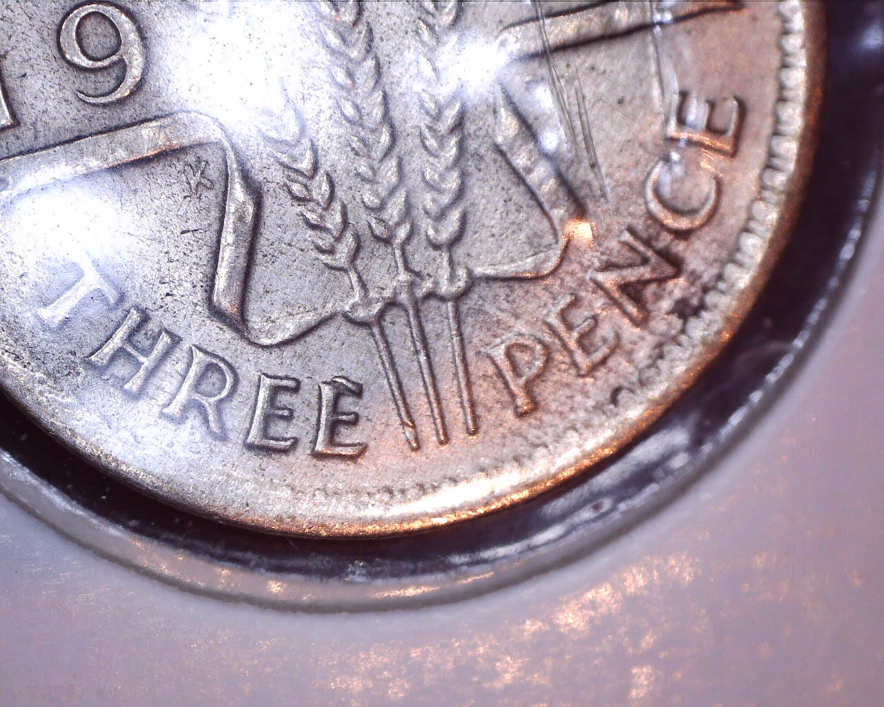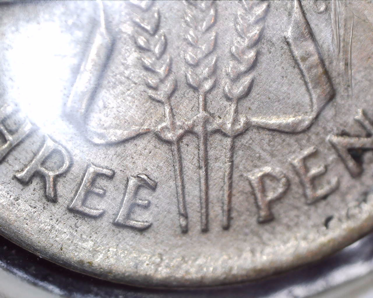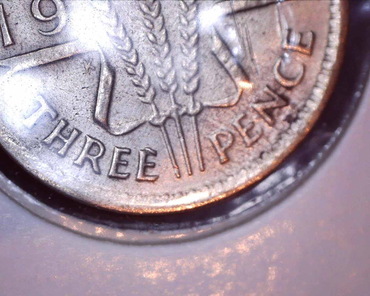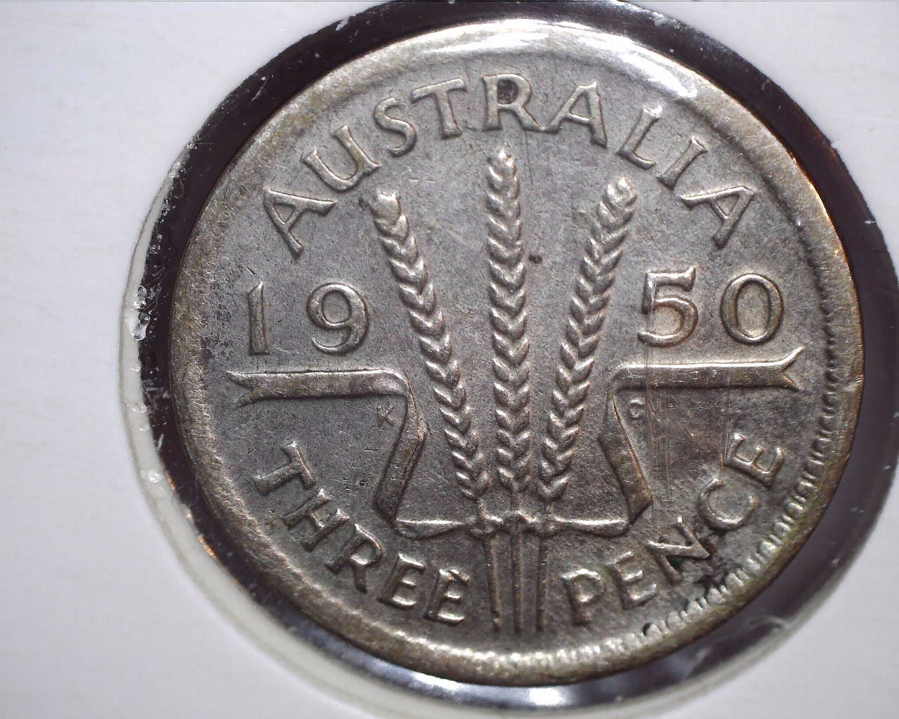 1950 Australian Three Pence - 50% Silver - CUD Error