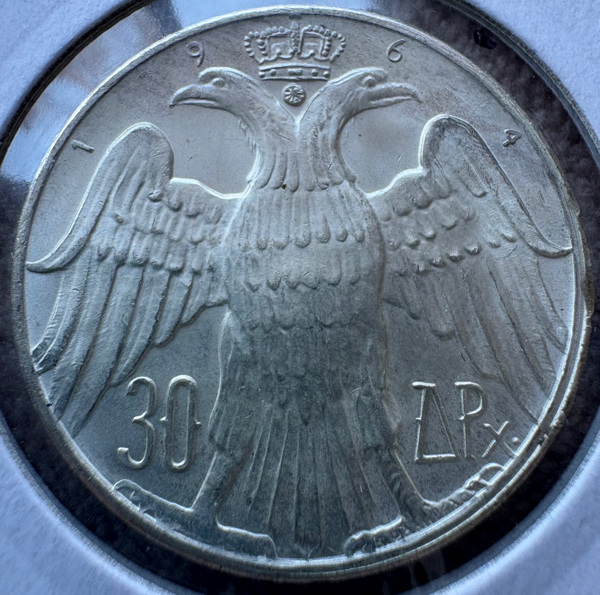 1964 Greece 30 Drachmai Constantine II Royal Marriage .835 Silver KM# 87