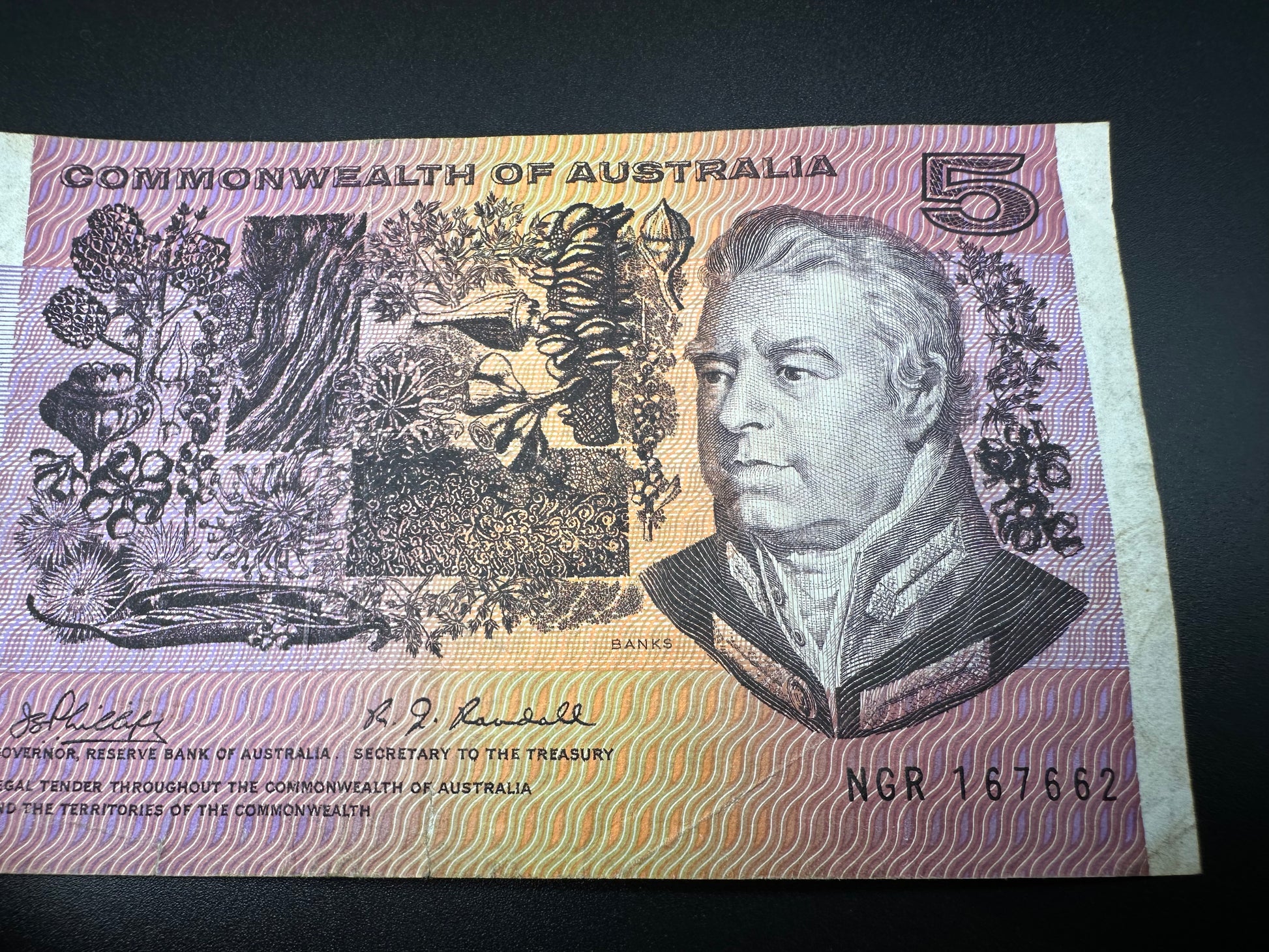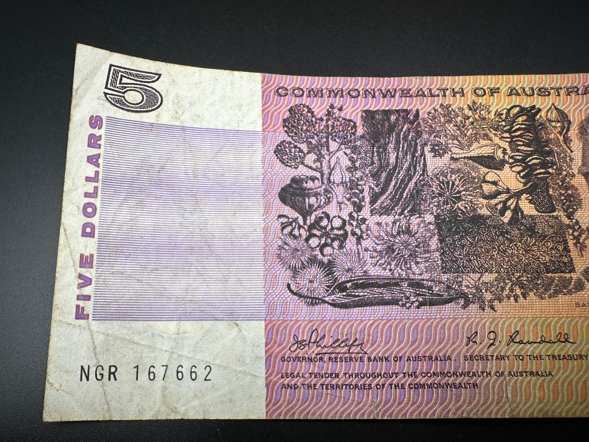 1969 $5 Australia Paper Banknote - Phillips Randall NGR 167662