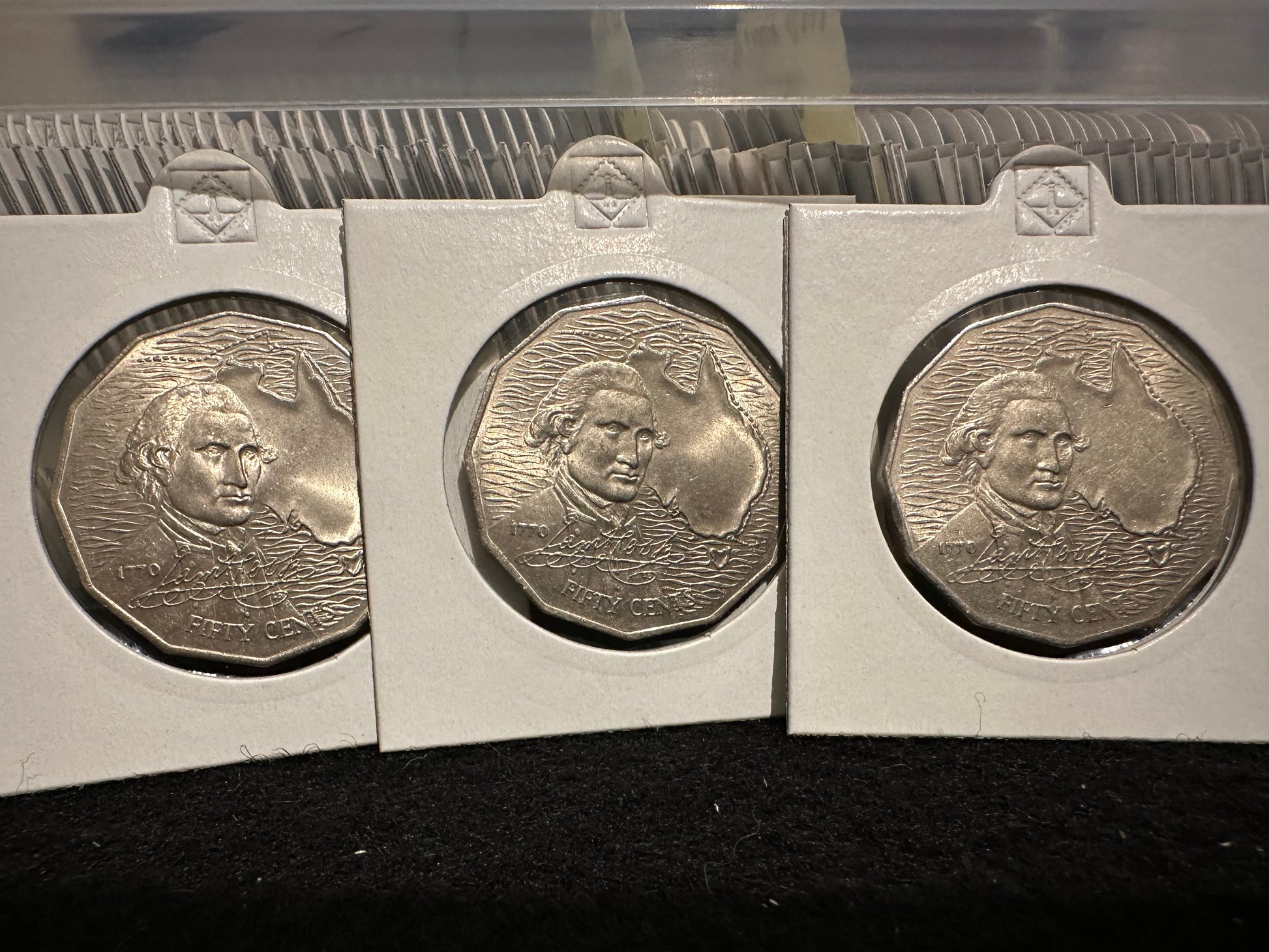Commemorating the Bicentenary of Captain James Cook's arrival into Botany Bay in April 1770 the Royal Australian Mint struck Australia's first commemorative decimal coin dated 1970. The coin's reverse depicts Captain Cook and an outline map of Australia in the background.