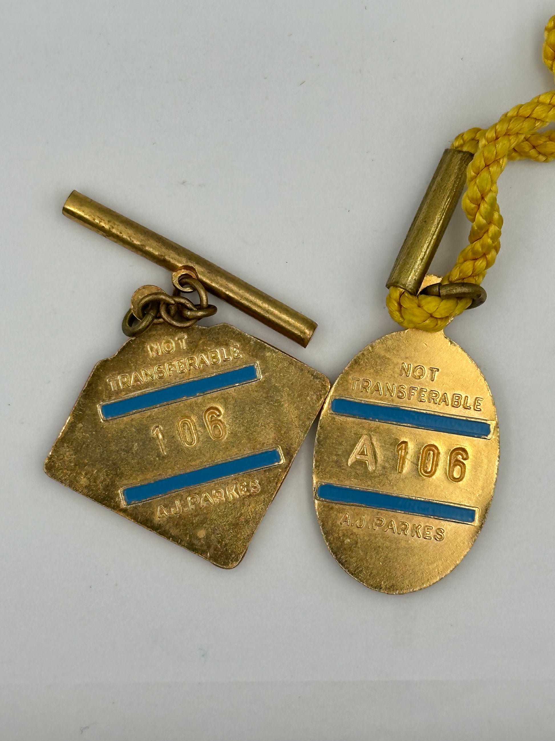 Vintage 1975-1976 Pinjarra Race Club Enamel Member Badge & Lady Badge