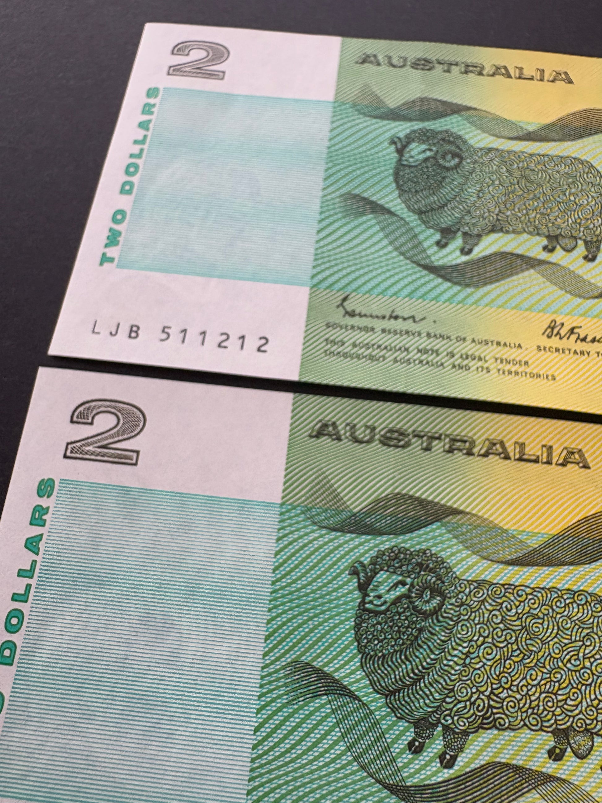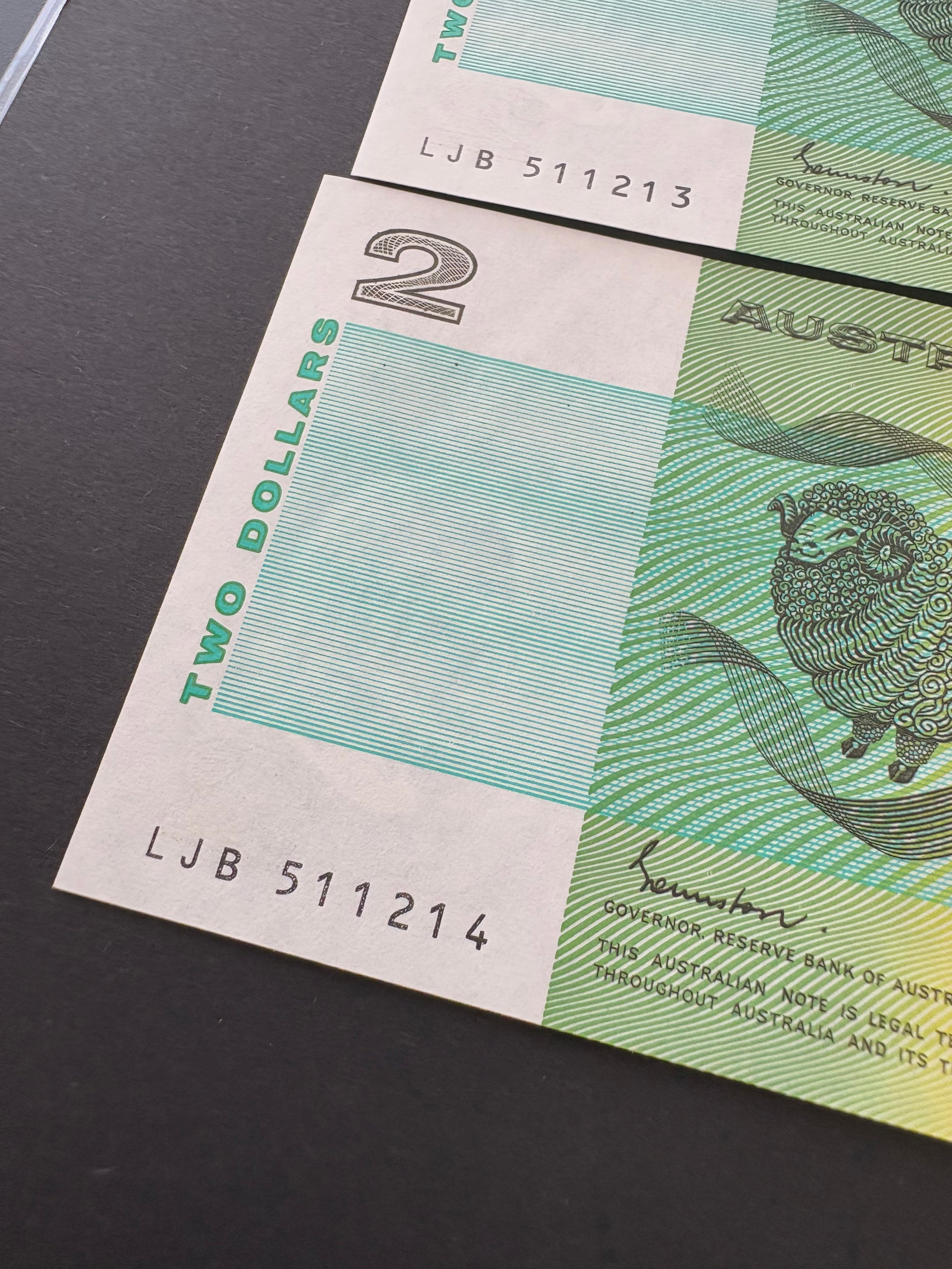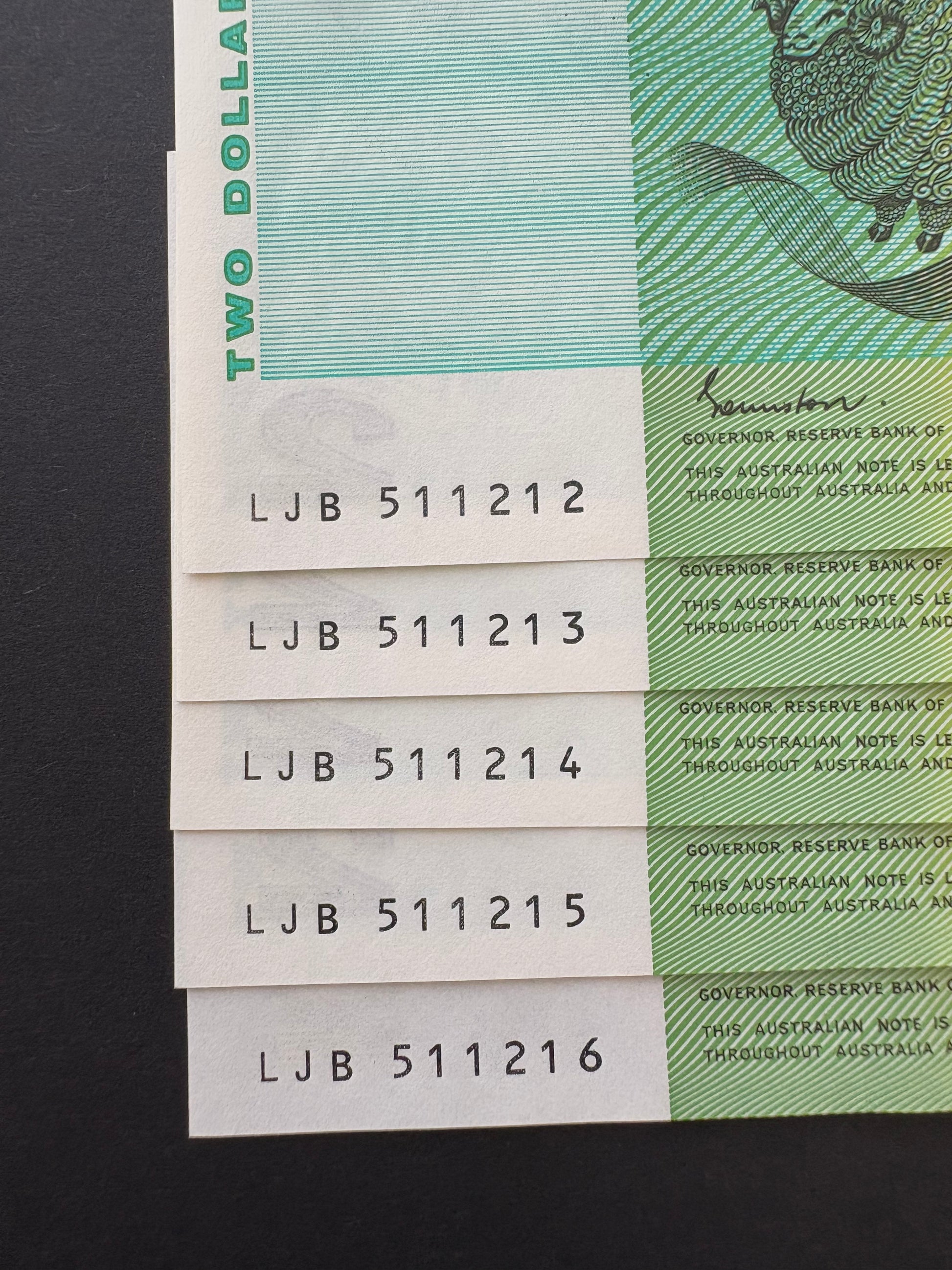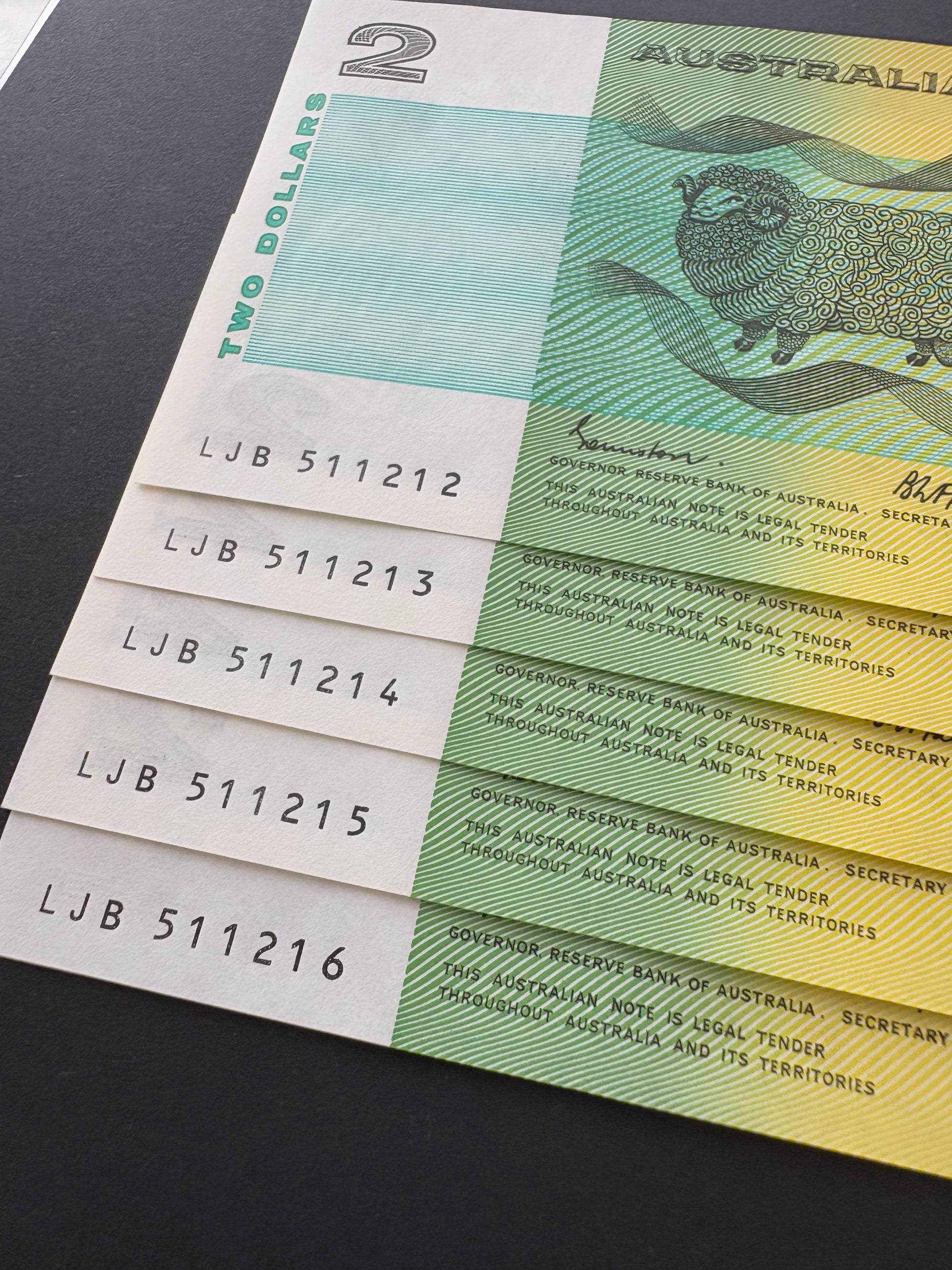 1985 $2 Australia Paper Banknote - Johnston Fraser 5x Consecutive