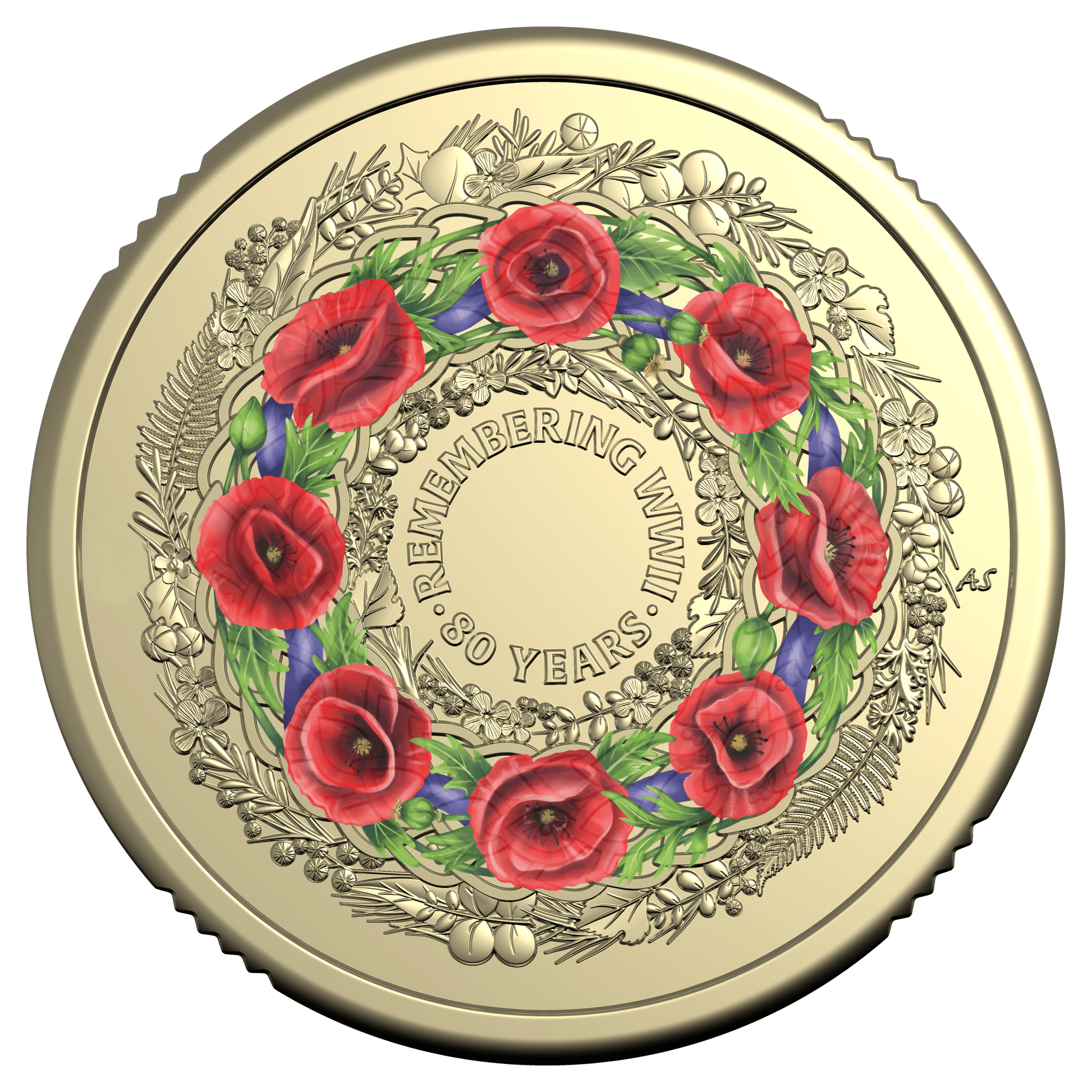 2025 $2 “80 Years On: Remembering the Second World War” Poppy Wreath Coloured Circulating Rolled Coin – Premium Edition