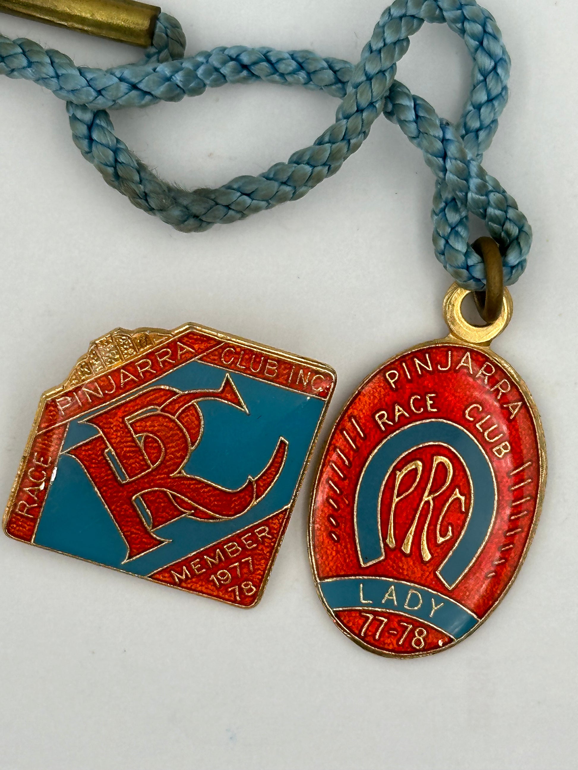 Vintage 1977-1978 Pinjarra Race Club Enamel Member Badge & Lady Badge