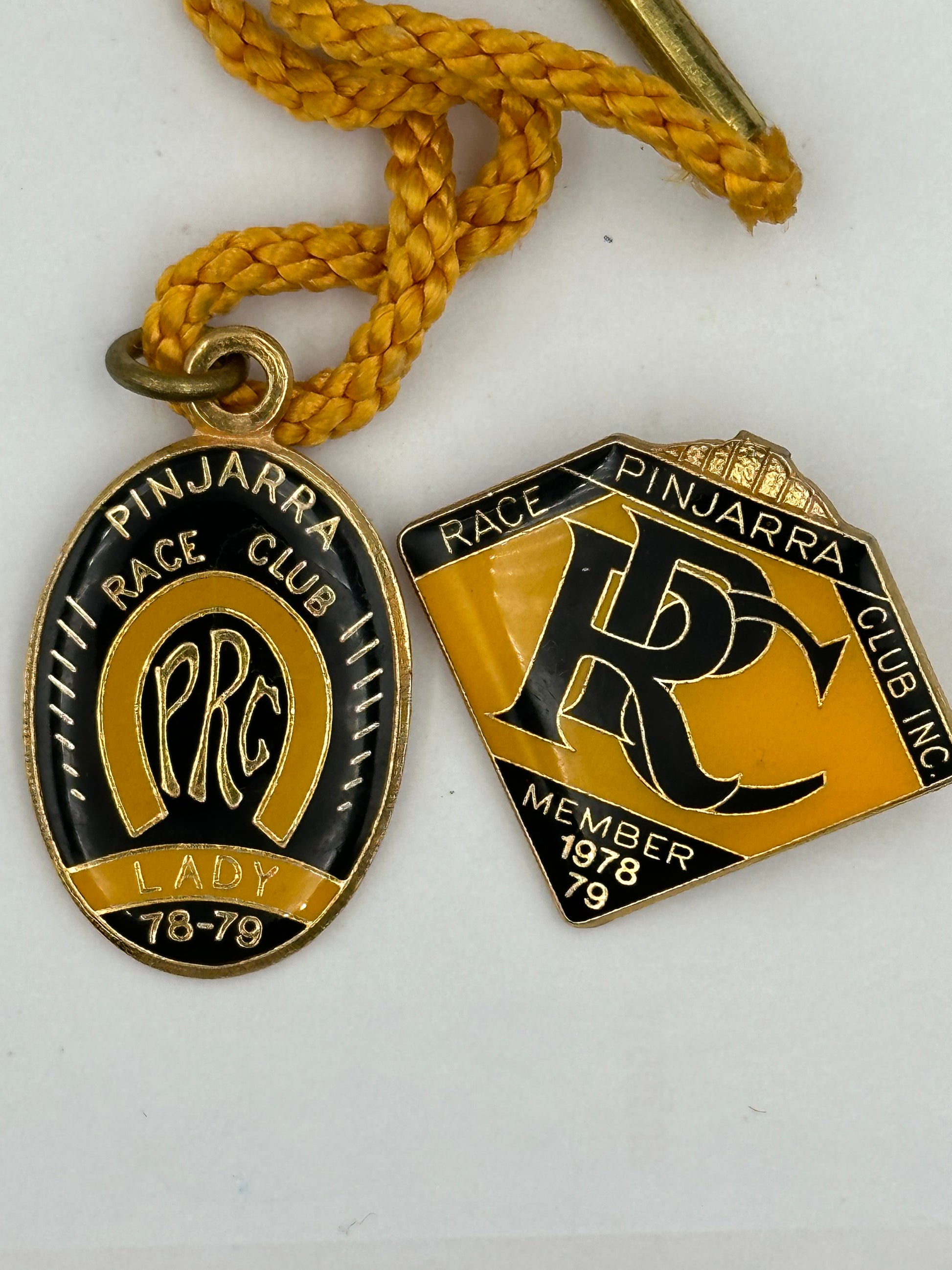 Vintage 1978-1979 Pinjarra Race Club Enamel Member Badge and Lady Badge