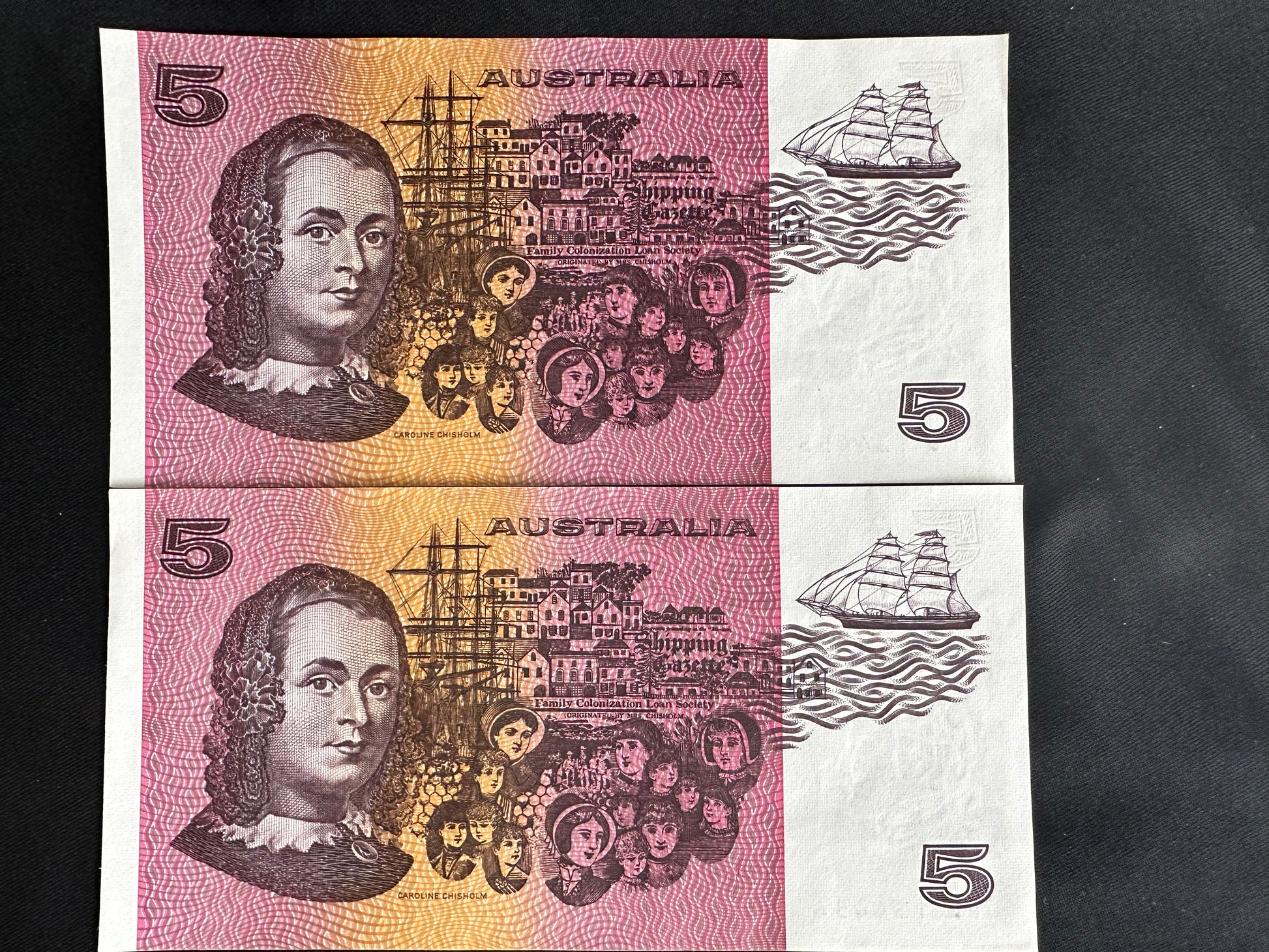 1985 $5 Australia Paper Banknotes - Johnston Fraser - Consecutive x2