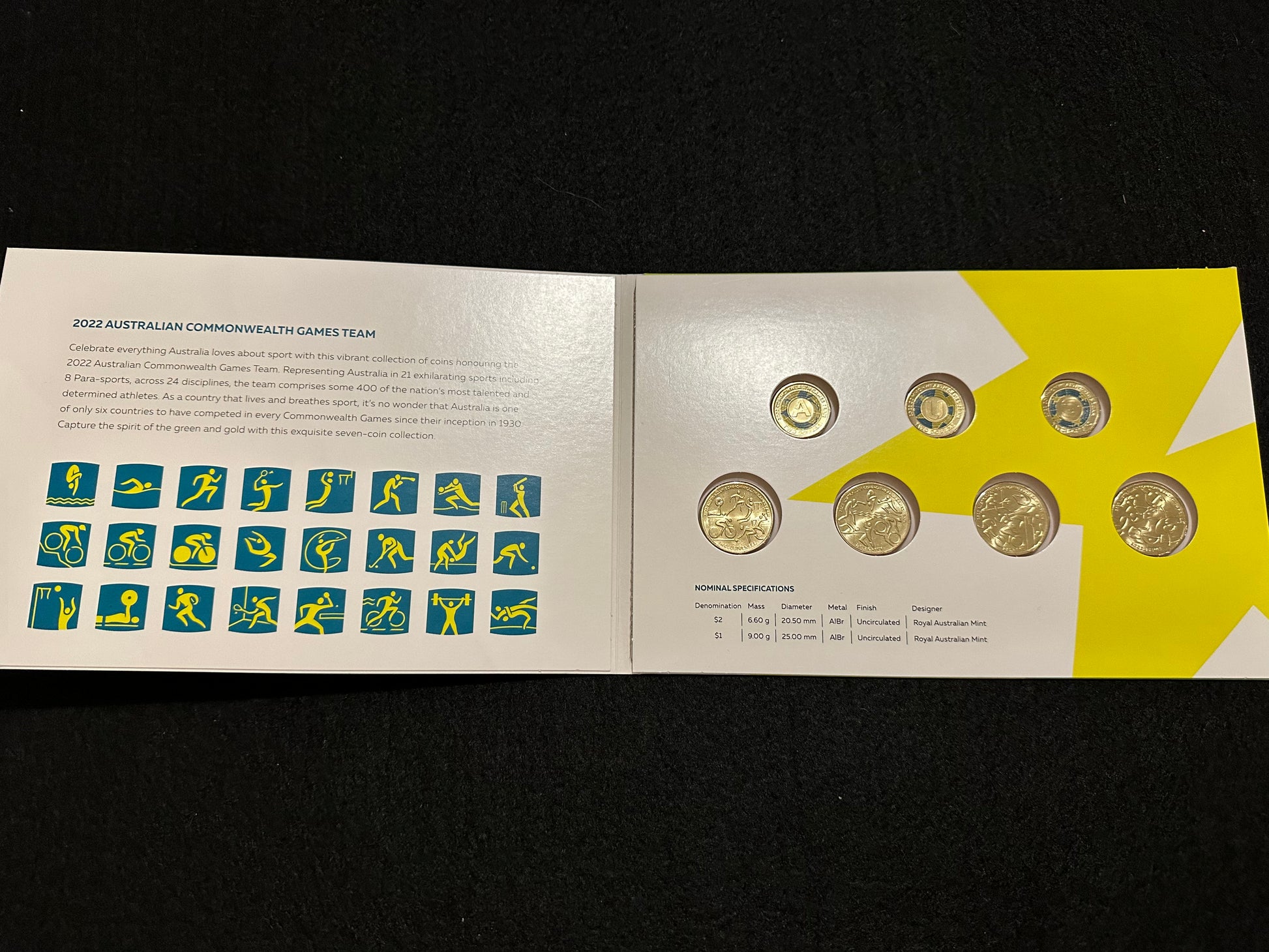 2022 Australian Commonwealth Games Team 7 Coin Collection in folder